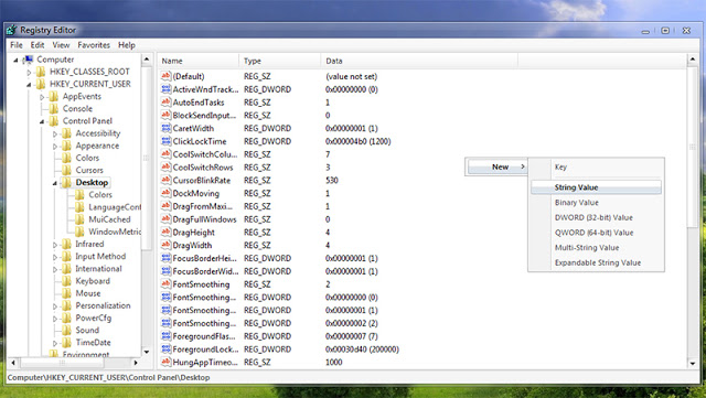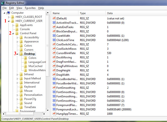 - HKEY_CURRENT_USER \ Control Panel \ Desktop.