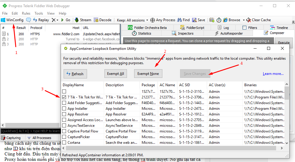 Sau khi tải về, cài đặt, mở Fiddler lên và các bạn chọn Wincofig sau đó thiết lập như ảnh dưới đây.